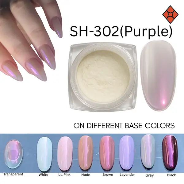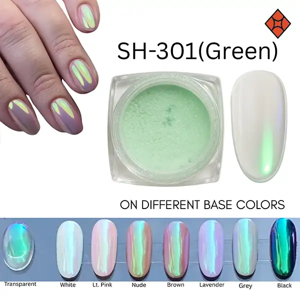 Each powder in this series delivers a specific color reflection—pink, gold, green, purple, or silver—making it ideal for creating endless chrome variations on top of any base.