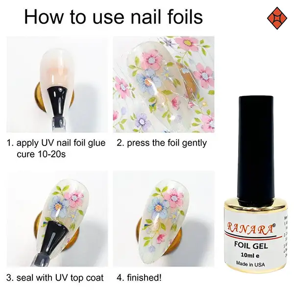 FOIL GEL is a UV & LED cure gel which helps the transfer foil to get evenly transferred on the nail surface. The gel once cured needs to be cleaned and then stick the foil on it and peel out leaving the pattern from the foil transferred on the nail.