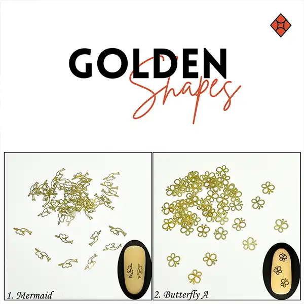 Ranara Golden Shapes are intricately cut gold metallic outlines designed to add a luxurious, fashion-forward edge to any nail art. With 15 to 18 assorted designs ranging from hearts, flowers, stars, mermaids, to brand-style logos, these ultra-fine metallic pieces are perfect for creating statement accents or designer-inspired layouts on feature nails.