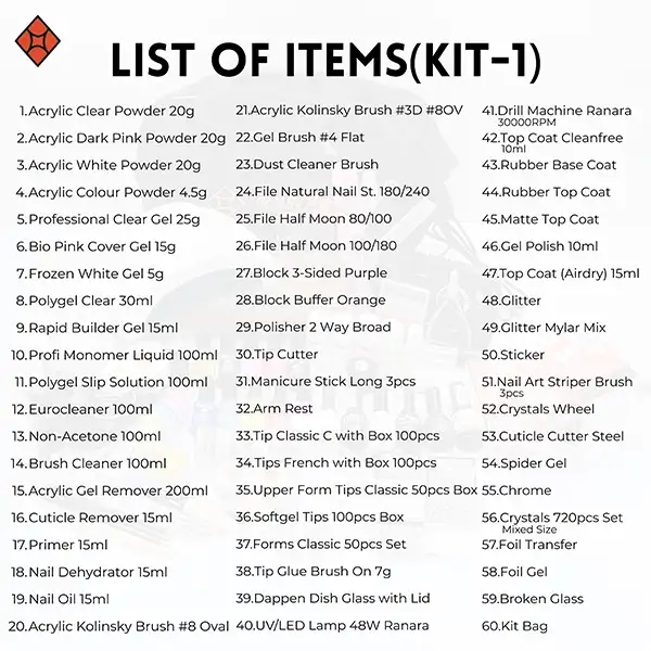 Ranara Nail Kit 1 is a thoughtfully curated, pre-customized professional nail kit specially designed for students, beginners, and new salon setups. It covers all major nail systems and includes every essential tool and product you need to build, decorate, and finish beautiful nails. Instead of buying items separately and randomly, this kit helps you set up an entire nail table – right from the start.