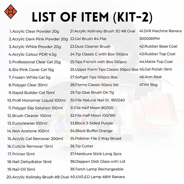 Ranara Nail Kit No. 2 is a professionally curated, pre-customized kit that includes all core nail systems — Acrylic, Gel, Polygel, Soft Gel, and Gel Polish — thoughtfully packed for students and professionals. The only difference from Kit No. 1 is that this version excludes decorative nail art accessories, making it ideal for those focusing strictly on structure, application, and system mastery.