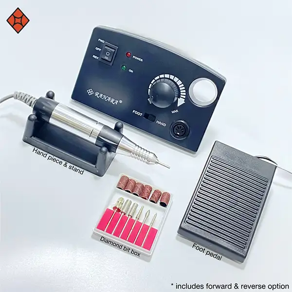 In summary, the RANARA Professional Drill Machine is a robust, efficient, and adaptable tool that stands out in the nail care market. With a powerful speed of 30,000 RPM, a handy foot pedal, a secure handpiece holder, and a versatile six-piece diamond bit set, it delivers exceptional performance for a variety of nail services. Its compact, lightweight design, adjustable speed control, and dual operation modes make it a favorite among professionals and freshers alike. This drill machine is an excellent investment for anyone serious about providing high-quality nail care.