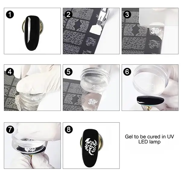 STAMPING GEL is a UV & LED cure designing gel. It is more pigmented than the art gel and thus can easily be transferred from stamping plate to a stamper and thus can be used for stamping nail arts.