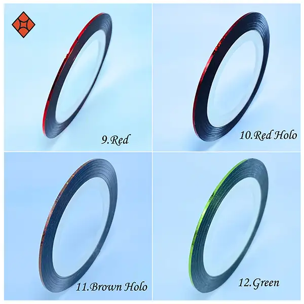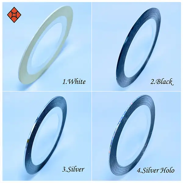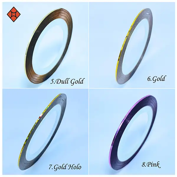 Ranara Striping Tapes are ultra-thin, decorative nail art tapes made of metallic, holographic, or glittered paper. These tapes are self-adhesive, easy to handle, and perfect for creating clean, sharp lines and graphic designs on the nail. Available in a wide variety of colors and finishes — from classic gold and silver to bold holographic and shimmering glitter options.