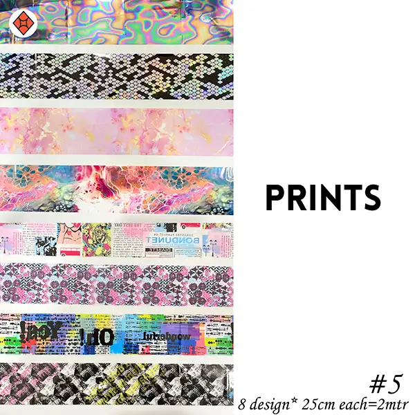 Ranara Transfer Foil β Printed is a curated set of unique pre-designed foils that allow you to effortlessly create intricate nail art with a professional finish. Each set includes 8 different printed designs, each measuring 25 centimeters, making it a total of 2 meters per set.