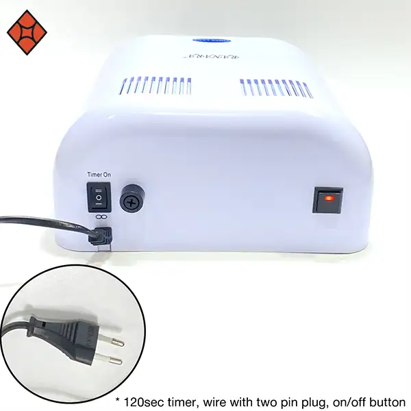 it is a powerful and versatile 36w UV lamp perfect for curing gels. it has four 9w bulbs that provides strong and even UVA rays which ensures proper curing, by emitting UVA rays having wavelength of 300-400nanometer, which is the most effective wavelength for curing gels. the bulbs are long lasting and can be replaced. this lamp also comes with an inbuilt timer for easy usage. teh curing time for uv gels is 2 minutes.