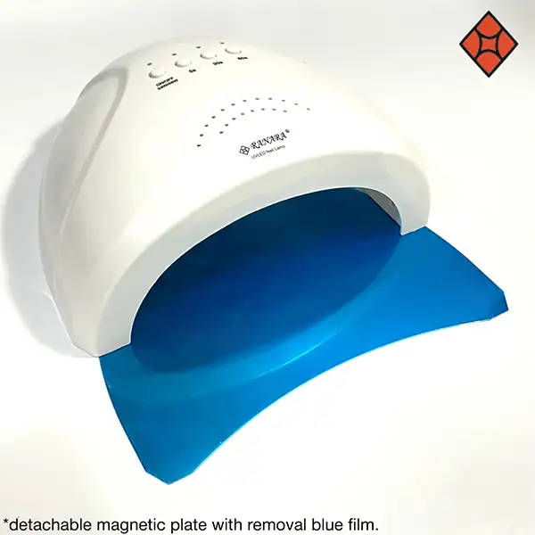 it is a compact but versatile UV LED Lamp, which cures both UV & LED gels. the 48w bulbs having wavelength of 405nm is sufficient to optimally cure one hand at a time interchangeably. incoporated with the features like automatic sensor, low power mode and detachable base making it easy to work on feet. it provides strong and even UVA rays which ensures proper curing . 405nm is the most effective wavelength for curing gels. curing time-UV gels-2mins LED gels-60seconds.
