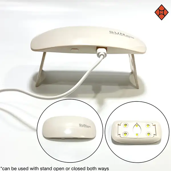 it is a portable, lightweight mini UV LED lamp perfect for curing/fixing gels or gel polishes. works on micro usb port, which is very convenient in case of no power. curing time-uv gels-3mins and led gels-60seconds. make sure the hands/fingers are right below the light.